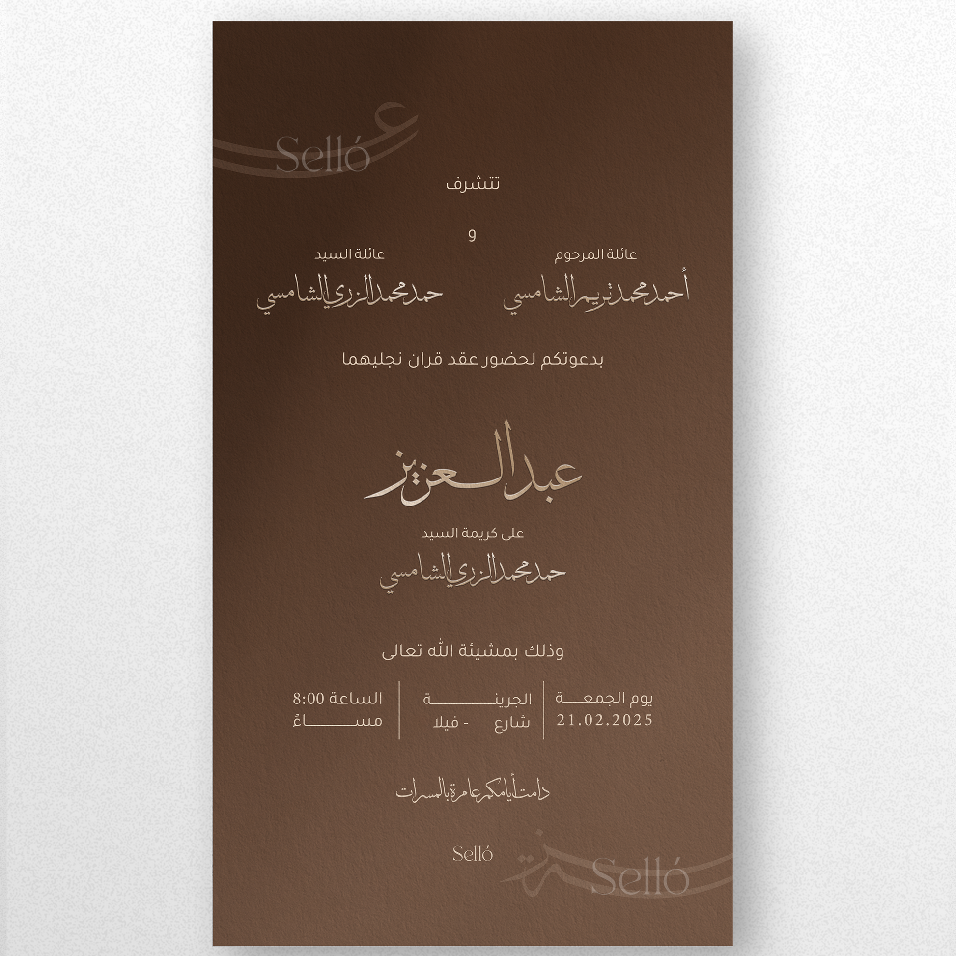 Type the bride and groom’s name and initials, then choose your favorite font اكتب اسم المعرس والعروس، ثم قم باختيار الخط المفضل لديك